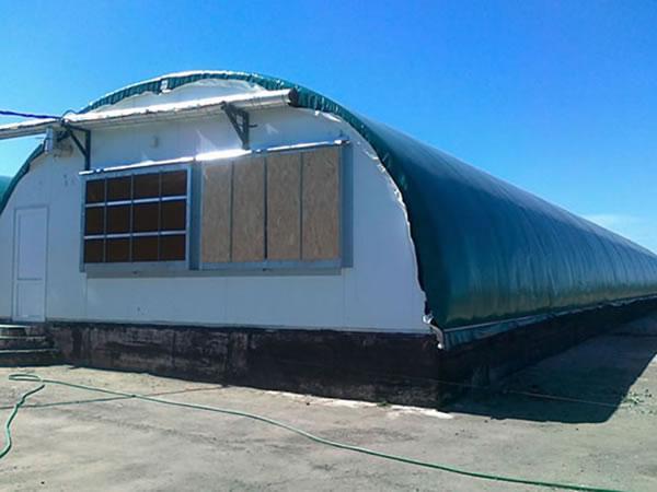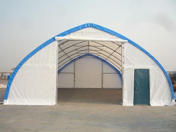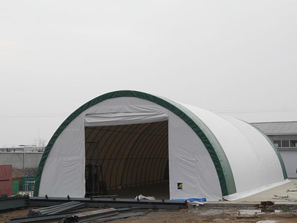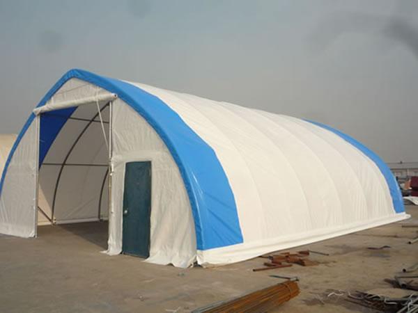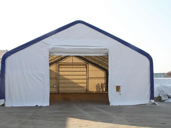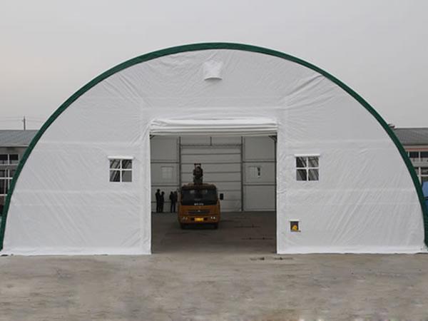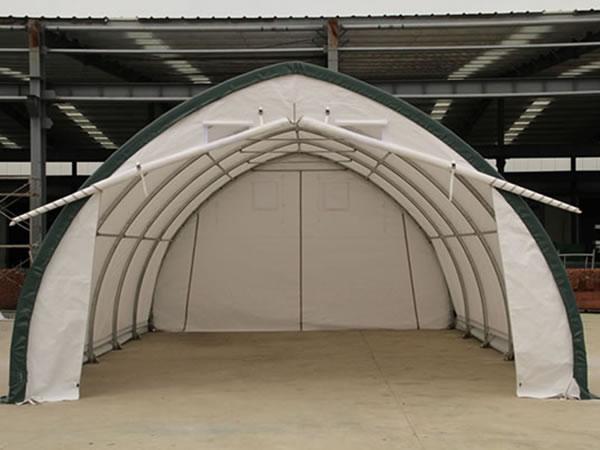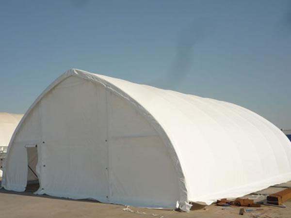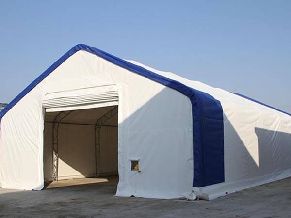 Hangar lotniczy z materiału Struktury te można używać jako hangary samolotowe, obiekty do napraw samolotów, warsztaty dla helikopterów, hangary ultralekkie i lekkie. Te hangary lotnicze z materiału chronią samoloty, helikoptery i inne urządzenia lotnicze. Występują w rozmiarach od 30-100 stóp i szerszych, pasując do niemal każdego rozmiaru samolotu.